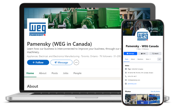 V.J. Pamensky Canada Inc. was founded in Toronto, Ontario in September 1977 as the exclusive importer of WEG Electric Motors, Controls and Transformers into Canada. The original inventory was small, as were the premises, but these products quickly found a place in the Canadian industrial market. From these beginnings, growth came rapidly, resulting in successive moves to different locations in order to meet the demands for increased inventory and service.